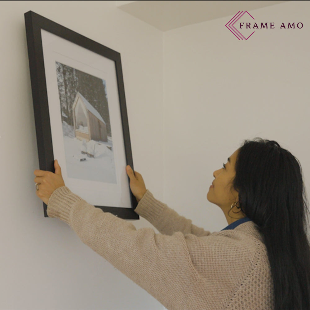 Larger frames require more than a single nail to stay secure. At Frame Amo, our heavier solid wood frames come with pre-installed D-rings on the back of the moulding, ensuring they can be safely displayed without strain or shifting.