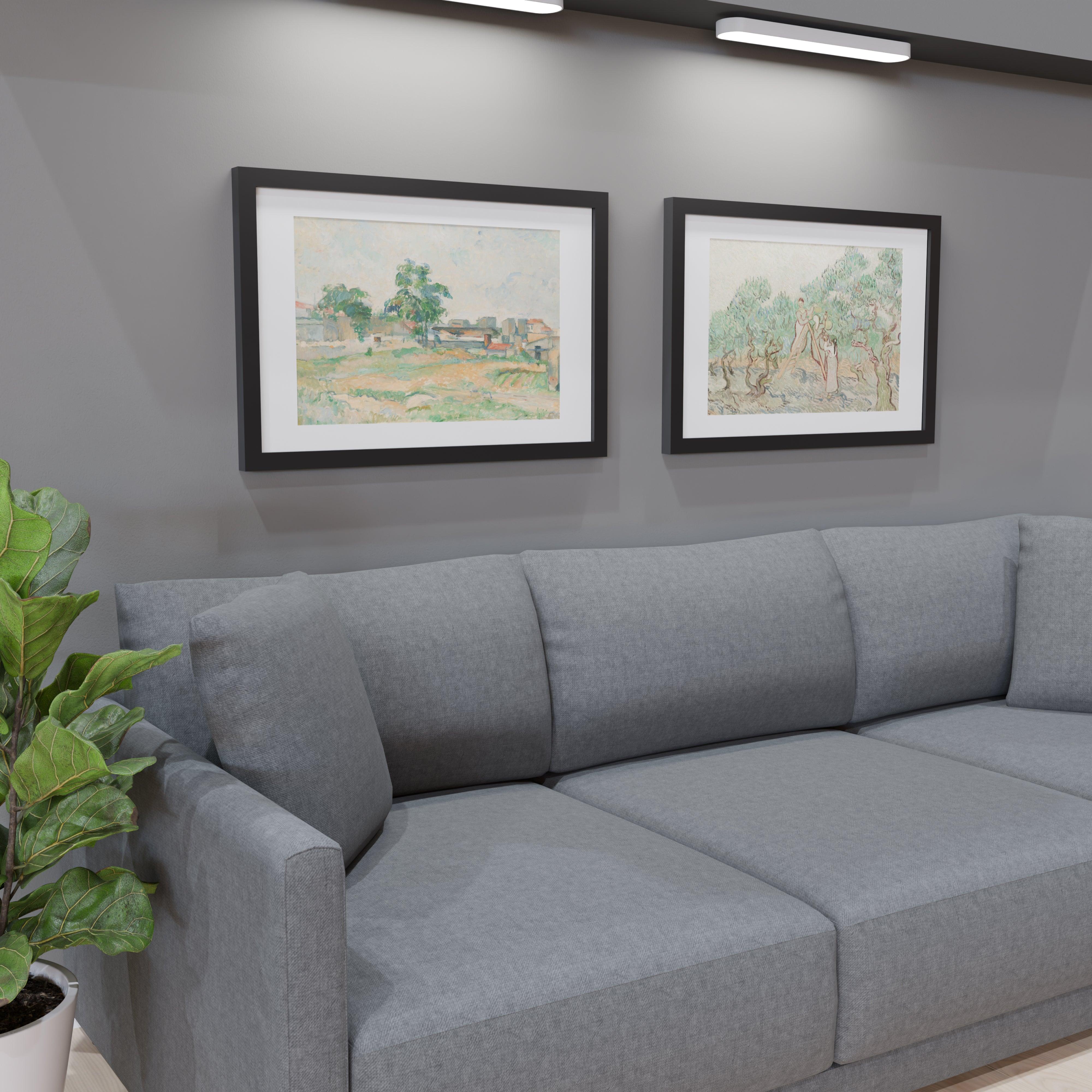 Pro tip: Many designers and galleries recommend centering artwork at 57–60 inches from the floor to the midpoint of the piece³.
