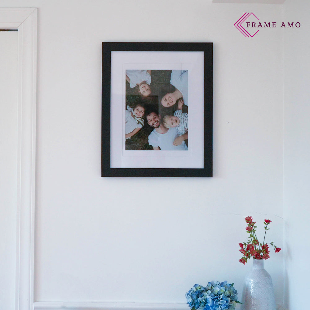 Our frames are carefully crafted to fit the exact size of your artwork, with a 1/2-inch display cut-off for a precise and polished presentation. For example: